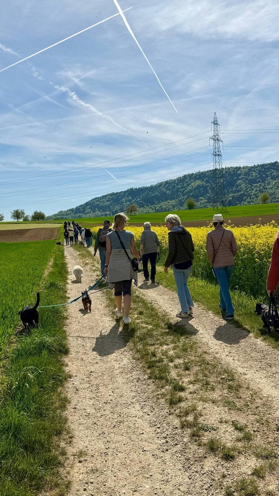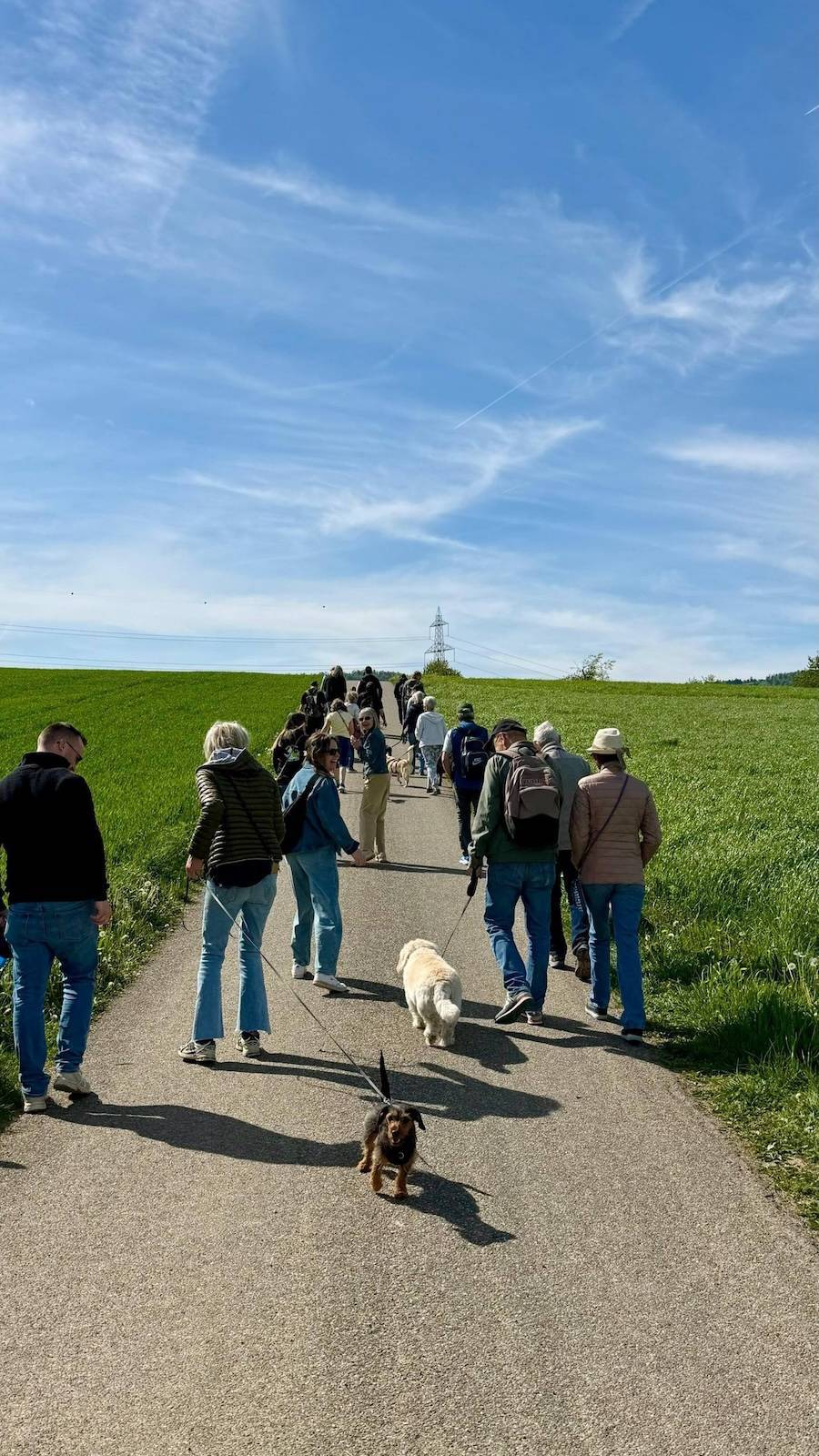 Heute waren 28 Hunde mit ihren Menschen mit dabei – oder sagen wir besser: 28 Hunde und ihr jeweiliges Personal. Bei traumhaftem Wetter durften wir gemeinsam einen wunderbaren Spaziergang erleben. Es wurde geschnuppert, gewedelt, gelacht, geplaudert und hier und da vermutlich auch über Leckerli-Verträge verhandelt.