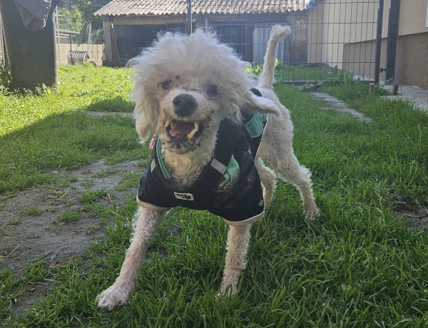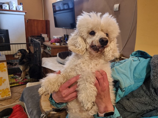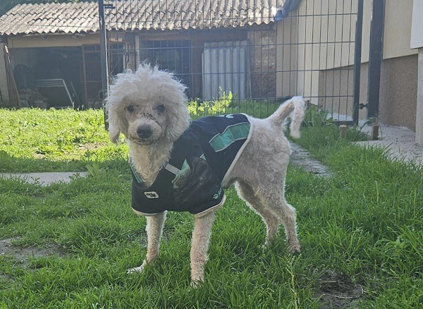 Mitte April kam unser Bátor zu Ivett ins Vereinshaus/Nagatad. Sein bisheriges erbärmliches Leben fristete er in einer kleinen verdreckten und heruntergekommen Wohnung. Die dortigen Zustände beschreibt Ivett als katastrophal und wir können uns nicht erklären, warum der Eigentümer von Bàtor es soweit hat kommen lassen und nicht früher um Hilfe gebeten hat. Für unseren Bátor war das der Befreiungsschlag, denn endlich konnte er aus seinem Martyrium befreit werden. Der allgemeine Zustand von Bátor war mehr als besorgniserregend, denn eine ordentliche Versorgung hatte nicht stattgefunden. Unser Pudelchen war voll mit Ungeziefer, hatte verfilztes Fell, viel zu lange Krallen und zudem waren all seine Zähne bereits vergammelt. Dadurch hatte Bátor natürlich auch starkes Untergewicht, denn anhand seiner unsäglichen Schmerzen war eine normale Nahrungsaufnahme nicht mehr möglich. Wir möchten uns nicht ausmalen, was dieses bedauernswerte Hündchen schon alles durchmachen musste! Bátor ist ca. 8 Jahre alt und besitzt ein liebes und freundliches Wesen. Fremden gegenüber verhält er sich anfänglich zurückhaltend. Er lässt sich berühren und auch Streicheleinheiten zu, allerdings möchte er nicht hochgenommen werden. Bátor wurde bereits tierärztlich versorgt und es geht ihm schon wesentlich besser. Trotzdem werden noch weitere Operationen bezüglich seiner Zähne von Nöten sein, da nicht alle Zähne auf einmal entfernt werden konnten. Bátor liebt es Ball zu spielen und diesen auch zu apportieren. Er geniesst also in vollen Zügen seine neu gewonnene Freiheit! Was er allerdings nicht besonders mag ist, wenn er hochgenommen wird. Dies ist ihm nicht geheuer und lässt er nur bei vertrauten Personen über sich ergehen. Grundsätzlich sollte man keine übertriebenen Erwartungen an Bátor stellen, sondern ihm die Zeit geben die er benötigt, um sich in seinem neuen Zuhause einzugewöhnen. Gerne kann unser Lockenhund als Zweithund vermittelt werden, da er sich absolut verträglich zeigt. Bátor würde sich sehr freuen, wenn sich bald liebe Menschen für ihn melden und er dann ein neues Kapitel in seinem Leben beginnen kann. Unser Wuschelkopf wünscht sich ein artgerechtes Hundeleben, mit einem eigenen weichen Körbchen, schönen Spaziergängen in der Natur, eine Familie die ihn wirklich liebt und ein Zuhause, wo er nie mehr enttäuscht wird.