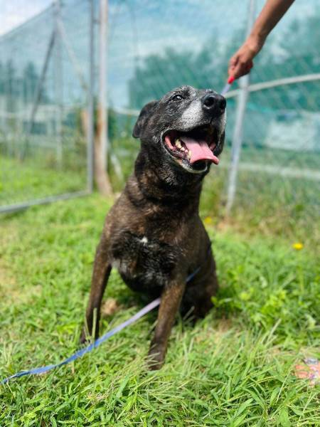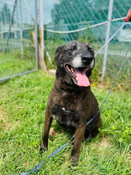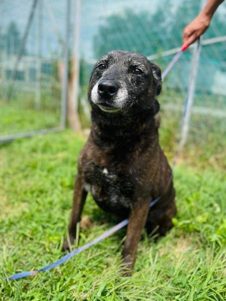 Auch Pixie gehört zu den Langzeitinsassen, seit 8 Jahren wartet sie auf eine Anfrage. Sie ist immer noch fit, aber die zunehmend graue Schnauze ist unübersehbar. Pixie liebt Menschen nach wie vor, ist sehr verschmust und zutraulich. Seit ihr Kumpan Wolfi nicht mehr da ist, lebt sie alleine im Zwinger. Gross, schwarz und dazu noch Listenhund - wir hoffen auf Menschen die sich davon nicht abschrecken lassen.