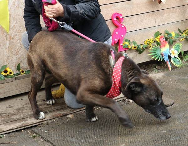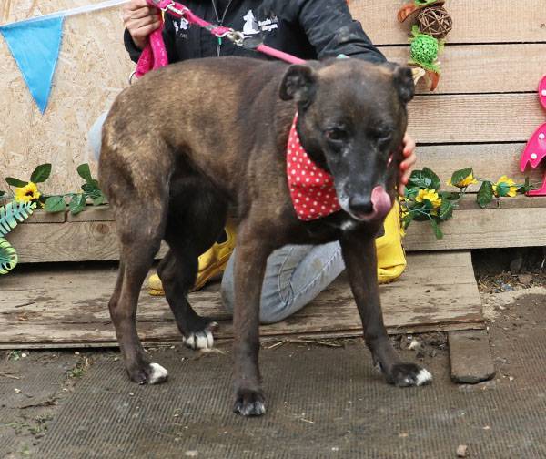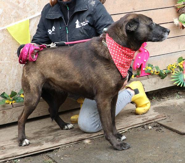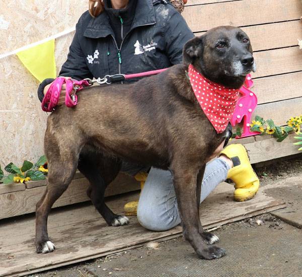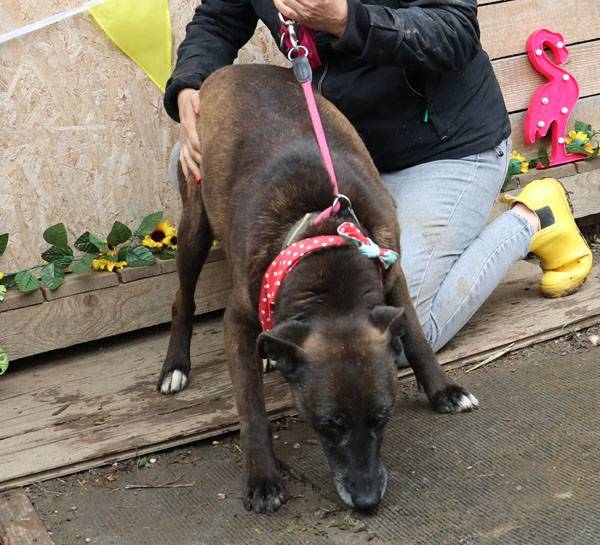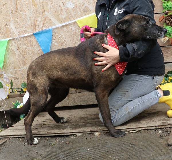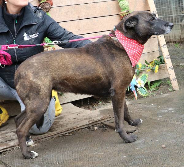 Pixie kam bereits vor mehreren Jahren ins Tierheim und wartet immer noch auf ihre Menschen. Ihre Mutter ist eine Staffordshire-Hündin, der Vater ein Deutscher Schäferhund. Pixie ist eine sehr liebe, verschmuste, aktive und verspielte Hündin und sie läuft recht gut an der Leine. Pixie war früher verträglich mit anderen Hunden und sie lebte lange Zeit zusammen mit Wolfi im gleichen Zwinger. Sie trauerte offensichtlich um den Verlust von Wolfi, denn seit er im Juli 2020 vermittelt wurde, mag sie keine anderen Hunde mehr in ihrem Zwinger.
