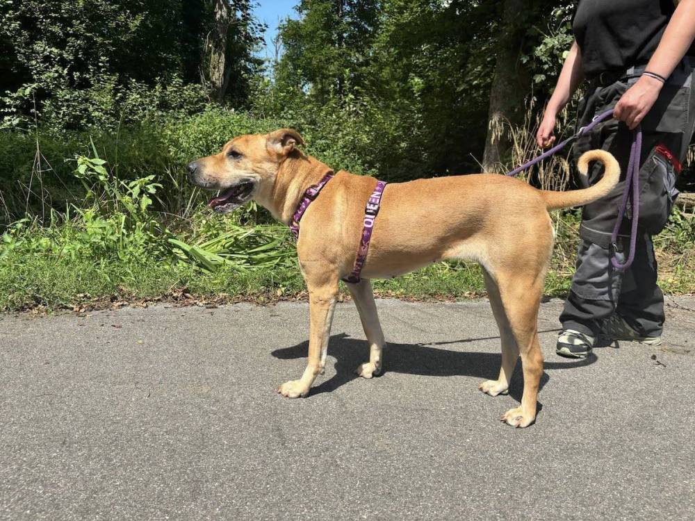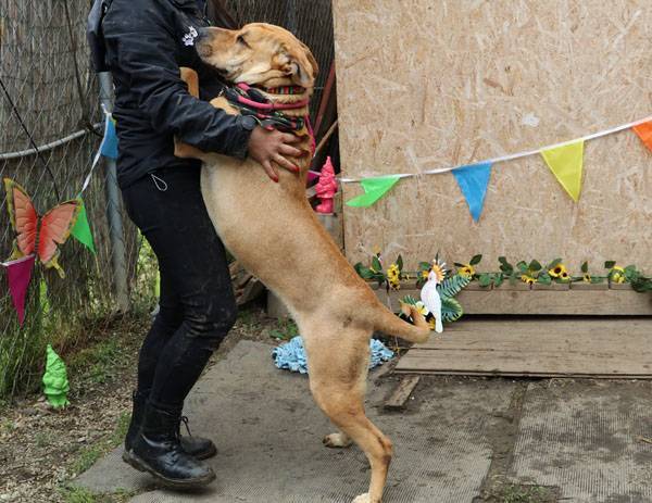 Meret wurde auf der Strasse gefunden. Da sich damals nur wenige so grosse Hunde im Tierheim befanden, musste Meret vorerst in einem Einzelzwinger untergebracht werden. Sie war von Anfang an sehr freundlich und zutraulich gegenüber Menschen. Es zeigte sich jedoch, dass sie andere Hunde nicht unbedingt mag. Für Meret suchen wir deshalb einen liebevollen Einzelplatz.