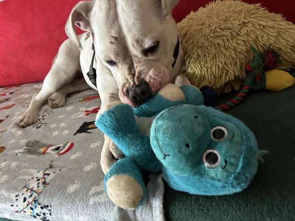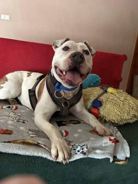 Ella wurde allein und herrenlos in Nagyatad auf der Strasse aufgegriffen. Eine Chipkontrolle blieb erfolglos und ein Besitzer hat sich nicht gemeldet. Ella ist ca. 5 Jahre (Stand 03/2024) alt und ein liebes und freundliches Hundemädchen, die sich über Aufmerksamkeit und Zuwendung freut. Derzeit befindet sie sich in Ungarn auf einer Pflegestelle und diese ist sich sicher, dass Ella einmal bei einer Familie im Haus gelebt haben muss. Sie kennt zum Beispiel Fernseher und Bett, liebt Kinder und ist absolut menschenbezogen. Gegenüber anderen Hunden zeigt sich Ella grundsätzlich verträglich, doch auf Grund ihres Rassetyps sollte sie lieber als Einzelprinzessin gehalten werden. Die Tierheimleitung vermutet bei Ella eine Mischung aus Staffordshire Terrier und eventuell Amerikanischer Bulldogge. Ella sollte geistig wie körperlich gefordert und gefördert werden. Zusätzlich sollten ihr noch einige Dinge vom Hunde-ABC mit Freude, Geduld und ohne Druck beigebracht werden, damit sie sich zu einer tollen Begleiterin im Alltag entwickeln kann. Wir suchen nun ganz dringend nach „Mr. und Mrs. Right“, wo unsere Ella endlich ankommen und ein würdiges Hundedasein geniessen darf. Verantwortungsbewusste und zuverlässige Menschen, die das Wesen und die Charaktereigenschaften dieser Hunde lieben und schätzen. Sicherheit und Geborgenheit spüren, eigene Menschen zu haben, die sie von Herzen lieben, ausgedehnte und abwechslungsreiche Spaziergänge erleben und ein vollwertiges Familienmitglied sein; all das wäre für unsere Ella ein Träumchen!