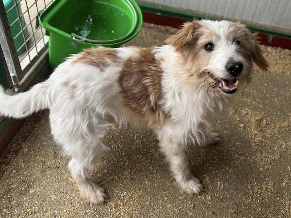 Geschichten wie diese passieren fast täglich und jedes Mal bricht es uns wieder das Herz. Auch diese arme Seele musste heute von der Strasse gerettet werden. In einem schrecklich verwahrlosten Zustand streifte dieser Hund mehrere Tage lang voller Angst durch die Strassen von Bonyhád. Zum Glück zog er sich heute in einen Park zurück und somit bot sich die Gelegenheit ihn zu sichern. Dieser Moment war für Melinda und Dóra allerdings alles andere als einfach, denn das arme Kerlchen hatte solche Panik, dass er sich wehrte, knurrte und versuchte zu beissen. Nach der Sicherung wurde er sofort zum Tierarzt gebracht und dort zeigte schon der erste Blick, wie schlimm es um ihn stand. Sein Fell war so verfilzt und mit sämtlichen Unrat verdreckt, dass er grosse Schmerzen hatte. Sein Atem stank fürchterlich und seine verstümmelten Zähne erzählten von einem Leben voller Vernachlässigung. Um ihn untersuchen zu können, musste er kurzzeitig betäubt werden, damit er nicht noch weiterem Stress ausgesetzt war. Während er schlief könnte der Rüde von seinem schmerzhaften Fellpanzer befreit werden, den er offensichtlich schon über Jahre mit sich getragen hatte. Ein Chip wurde nicht gefunden und angesichts seines Zustands ist es mehr als wahrscheinlich, dass er seit Langem niemandem mehr etwas bedeutet hat. Jetzt liegt er in der Villa Wuff im Warmen, in einem weichen Bettchen und muss keine Angst mehr haben vor Misshandlungen, Hunger, Kälte und Gewalt. Er kann sich nun ausruhen und wieder zu Kräften kommen. Er hat den Namen Mityo erhalten.