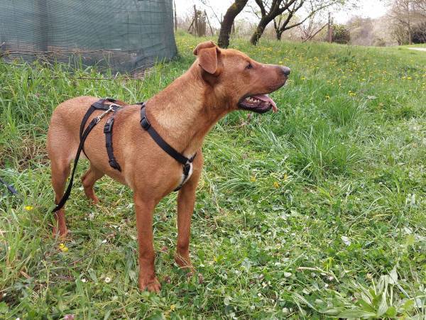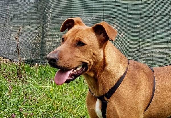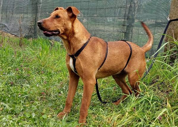 Unser hübscher Vili wurde allein und orientierungslos im Wald gefunden. Vermutlich wurde er ausgesetzt und dort einfach zurückgelassen. Obwohl er in seinem bisherigen Leben offensichtlich nicht viel Schönes erfahren durfte, zeigt Vili sich in der Station lieb, freundlich und aufgeschlossen. Er freut sich über jegliche Art von Aufmerksamkeit, ist interessiert an seiner Umwelt und hat sehr viel Freude an Bewegung. Der junge Rüde wird auf ca. 1 Jahr geschätzt (Stand 04/2024) und da uns seine Elterntiere nicht bekannt sind, können wir leider nichts zum genauen Rassemix sagen. Seinem aktuellen Aussehen nach, könnte Vili jedoch ein Staffordshire Terrier-Mischling sein. Aktuell gehören andere Rüden nicht unbedingt zu seinen Freuden, aber mit Hündinnen scheint er gut verträglich zu sein. Nun suchen wir nach einem verantwortungsbewussten und dauerhaften Zuhause, bei warmherzigen Menschen, die Vili als vollwertiges Familienmitglied aufnehmen und ihm das Leben von der schönen Seite zeigen möchten. Da Vili ein sehr sportlicher Typ ist, suchen wir Hundefreunde die wissen wie man solch ein cleveres Energiebündel sowohl physisch als auch psychisch auslasten kann. Weiterhin suchen wir unternehmungslustige Menschen, die selbst auch viel Spass und Vergnügen an Bewegung haben. Ein Besuch in der Hundeschule wäre von Vorteil, da unser Jungspund noch alle wichtigen Dinge im Leben lernen muss, damit er ein souveräner Begleiter werden kann. Wer hat ein Herz für unseren bildschönen Vierbeiner und gibt ihm eine Chance?