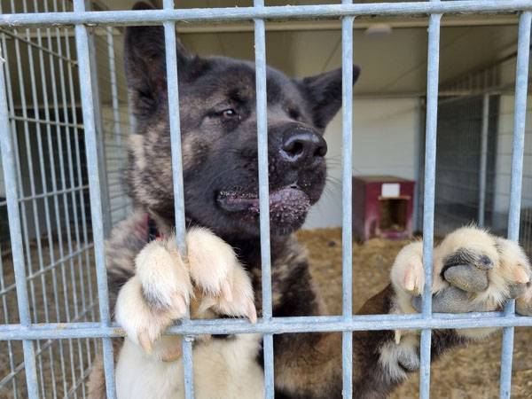 Unser bildschöner Hatshiko ist nun schon seit einiger Zeit Bewohner der Villa Wuff. Abgegeben wurde er von seinem Besitzer, weil er ihm zu gross geworden ist. Er habe Hatchi für viel Geld gekauft und war der Meinung, er bleibt ein kleiner Hund. Wir vermuten aber ganz stark, dass der ehemalige Besitzer von Hatchi total mit ihm überfordert war, denn der Akita zeigt sich in der Station eher unsozial und weniger freundlich. Seine Toleranzgrenze ist beschränkt und anfänglich durfte Keiner seinen Zwinger betreten. Dies hat sich glücklicherweise schon gebessert und die Reinigung seines Zwingers und die Futtergabe sind mittlerweile kein Problem mehr. Melinda, die Stationsleitung, vermutet zusätzlich, dass Hatshiko mehrfach geschlagen wurde, denn der Rüde ist ausser Rand und Band, wenn er einen Besen oder Ähnliches zu Gesicht bekommt. Dieser wunderschöne Hund wird vorerst in Ungarn bleiben bis er zur Ruhe gekommen ist. Wie lange Hatshiko braucht um wieder mit sich im Reinen zu sein wissen wir leider nicht, er bekommt aber alle Zeit der Welt. Deshalb suchen wir für unseren Hatchi liebe Paten, die an ihn glauben und ihn solange unterstützen und eine Freude machen wollen, bis er eventuell mal sein eigenes passendes Zuhause findet.