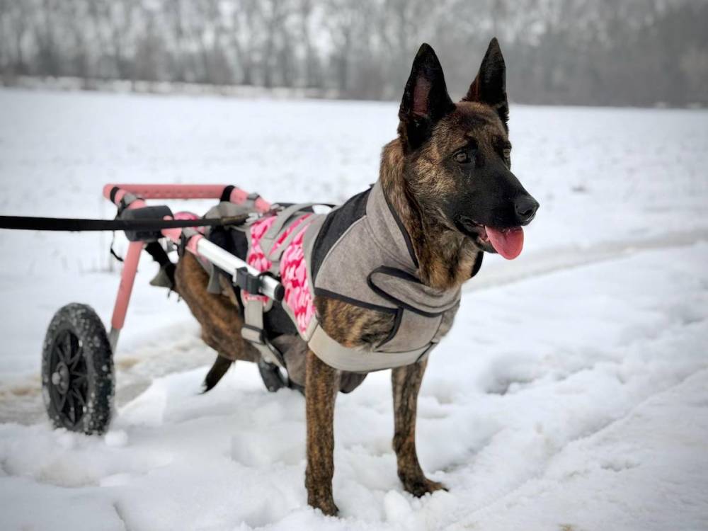 Aliz wurde allein und verletzt an einem Strassenrand gefunden. Sie trug nur ein altes, abgenutztes Halsband mit ihrem Namen darauf, aber niemand weiss, woher sie kommt oder was ihr genau passiert ist. Vermutlich wurde sie von einem Auto angefahren. Durch den Unfall ist ihr Rückenmark durchtrennt, weshalb sie nicht mehr laufen kann und gelähmt ist. Laut der Aussage des ungarischen Tierarztes kann Aliz auch nicht operiert werden, da dies keine Aussicht auf Besserung bringen würde. Trotz ihrer Lähmung hat Aliz keine Schmerzen und kann selbstständig Pipi und Stuhl absetzen. Aliz ist zwischen 4 und 5 Jahre alt (Stand 10/2025) und eine sehr liebevolle, aufgeschlossene und lebensfrohe Hündin. Sie sprüht vor Neugier und Lebensfreude, möchte die Welt entdecken, schnuppern, neue Eindrücke sammeln und einfach dabei sein. Ihre fröhliche Art steckt an und man merkt sofort, dass Aliz noch viel vor hat in ihrem Leben. Für unsere Rolli-Dame suchen wir ein ebenerdiges Zuhause ohne Treppen, idealerweise mit Garten, bei Menschen, die sie nicht auf ihre Lähmung reduzieren, sondern ihr grosses Herz sehen. Ein Zuhause, das ihr Sicherheit, Liebe, Zeit und Geborgenheit schenkt und das für immer. Aliz kommt mit ihrem Rollstuhl hervorragend zurecht. Für sie ist er kein Hindernis, sondern ein Schlüssel zu Freiheit und Abenteuer. Aliz zeigt, dass Glück keine vier funktionierende Beine braucht. Wer Aliz ein Zuhause schenkt, bekommt eine kleine Abenteurerin auf zwei Rädern, die jeden Tag zu etwas besonderen macht.