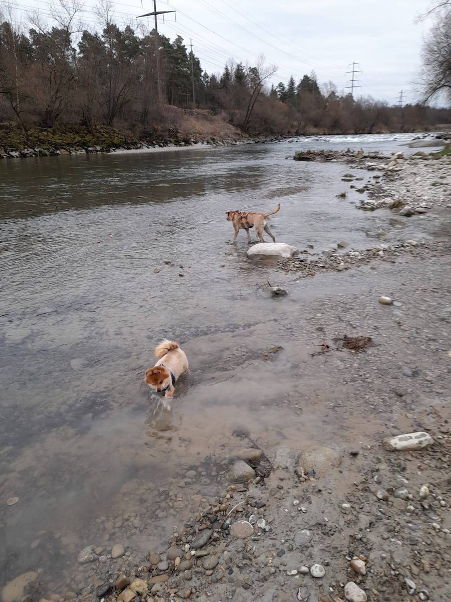 "...Mir sendäd eus na paar Föteli vo eusem hütigä Usflug.Vor allem wenn mir beidi freiii hend,gnüssed märs,wenn mär alli mitenand unterwegs sind...Siiiit einigä Täg dörf dä Ivar frei laufä.....natürli hemär vorher sehr flissig a das Ziel ane trainiert und er isch au mitemä Tracker usgstattet.Er losäd perfekt!!!Anderi Hünd,Velos,Jogger und au Wildtier.....keis Problem....eimal rüefä und dä Ivar stat wie en chliiine Zinnsoldat nebäd eim.