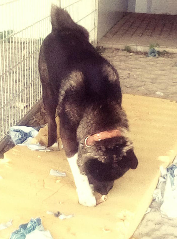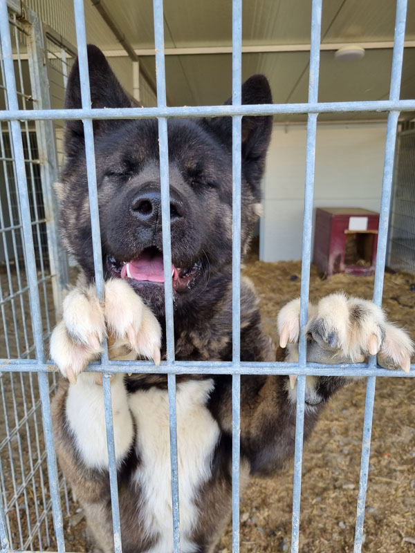 Unser bildschöner Hatshiko ist nun schon seit einiger Zeit Bewohner der Villa Wuff. Abgegeben wurde er von seinem Besitzer, weil er ihm zu gross geworden ist. Er habe Hatchi für viel Geld gekauft und war der Meinung, er bleibt ein kleiner Hund. Wir vermuten aber ganz stark, dass der ehemalige Besitzer von Hatchi total mit ihm überfordert war, denn der Akita zeigt sich in der Station eher unsozial und weniger freundlich. Seine Toleranzgrenze ist beschränkt und anfänglich durfte Keiner seinen Zwinger betreten. Dies hat sich glücklicherweise schon gebessert und die Reinigung seines Zwingers und die Futtergabe sind mittlerweile kein Problem mehr. Melinda, die Stationsleitung, vermutet zusätzlich, dass Hatshiko mehrfach geschlagen wurde, denn der Rüde ist ausser Rand und Band, wenn er einen Besen oder Ähnliches zu Gesicht bekommt. Dieser wunderschöne Hund wird vorerst in Ungarn bleiben bis er zur Ruhe gekommen ist. Wie lange Hatshiko braucht um wieder mit sich im Reinen zu sein wissen wir leider nicht, er bekommt aber alle Zeit der Welt. Deshalb suchen wir für unseren Hatchi liebe Paten, die an ihn glauben und ihn solange unterstützen und eine Freude machen wollen, bis er eventuell mal sein eigenes passendes Zuhause findet.