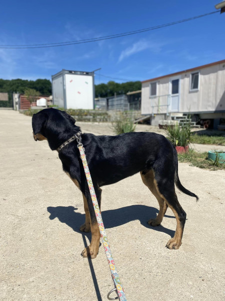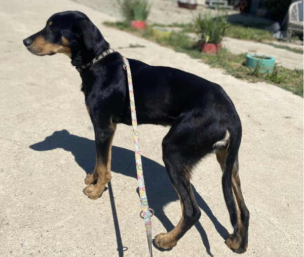 Anubis wurde seit Tagen immer wieder gesichtet, wie er verängstigt mit einer langen und schweren Kette im Schlepptau, auf der Strasse zwischen zwei Dörfern in der Nähe von Bonyhád umherirrte. Wir haben in einer gesonderten News über seine Rettungsaktion berichtet. Anubis wird auf ca. 6 Monate (Stand 06/2024) geschätzt und ist ein aufgestellter Bub mit einem lieben und freundlichen Wesen. Noch befindet sich Anubis in seiner „Aufwärmphase“, doch schon bald wird er merken, dass die Villa Wuff die Chance in seinem Leben ist. Da wir in Anubis einen Bracken-Mix vermuten, wird er ein aktiver Hund mit eventueller Jagdpassion und grosser Bewegungsfreude sein. Wer also daran denkt, sich einen solchen Rassemix zuzulegen, sollte immer berücksichtigen, dass es sich bei diesen Hunden um Laufhunde handelt, die gefordert werden wollen und auch sehr viel Auslauf brauchen. Mit spannenden Spielen und sinnvoller Auslastung bleibt Anubis nicht nur lange fit, sondern es stärkt auch die Bindung zwischen Hund und Mensch. Sicherlich durfte er in der Vergangenheit, ausser seiner Kette, noch nicht Allzu viel kennenlernen. Deshalb sollten seine neuen Menschen dem aufmerksamen und sehr cleveren Vierbeiner eine liebevoll-konsequente Erziehung ermöglichen. Natürlich muss er erst noch verstehen wie ein Hundeleben richtig funktioniert. Anubis ist ein ganz schlauer Bursche und es wird bestimmt viel Spass machen, mit ihm zu arbeiten und zu trainieren. Wir suchen nun begeisterte Hundefreunde, welche sich im Umgang mit dieser Rasse schon etwas auskennen. Liebe Menschen, die das Wesen und die Charaktereigenschaften dieser Hunde lieben und schätzen. Menschen, die genügend Platz, Zeit und Fingerspitzengefühl für unseren Anubis haben. Er wünscht sich ein liebevolles "Für immer Zuhause" mit 100% Familienanschluss, viel Auslauf, sportlichen Aktivitäten und mentaler Beschäftigung. Ein Haus mit Garten wäre von Vorteil. Zwingerhaltung wird ausgeschlossen!