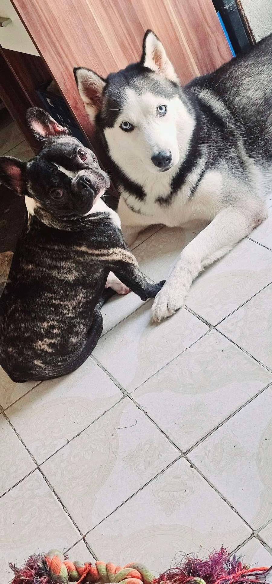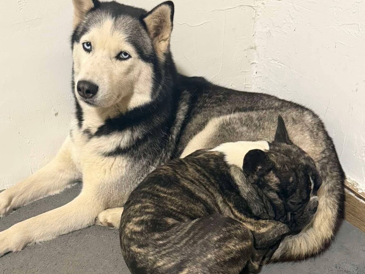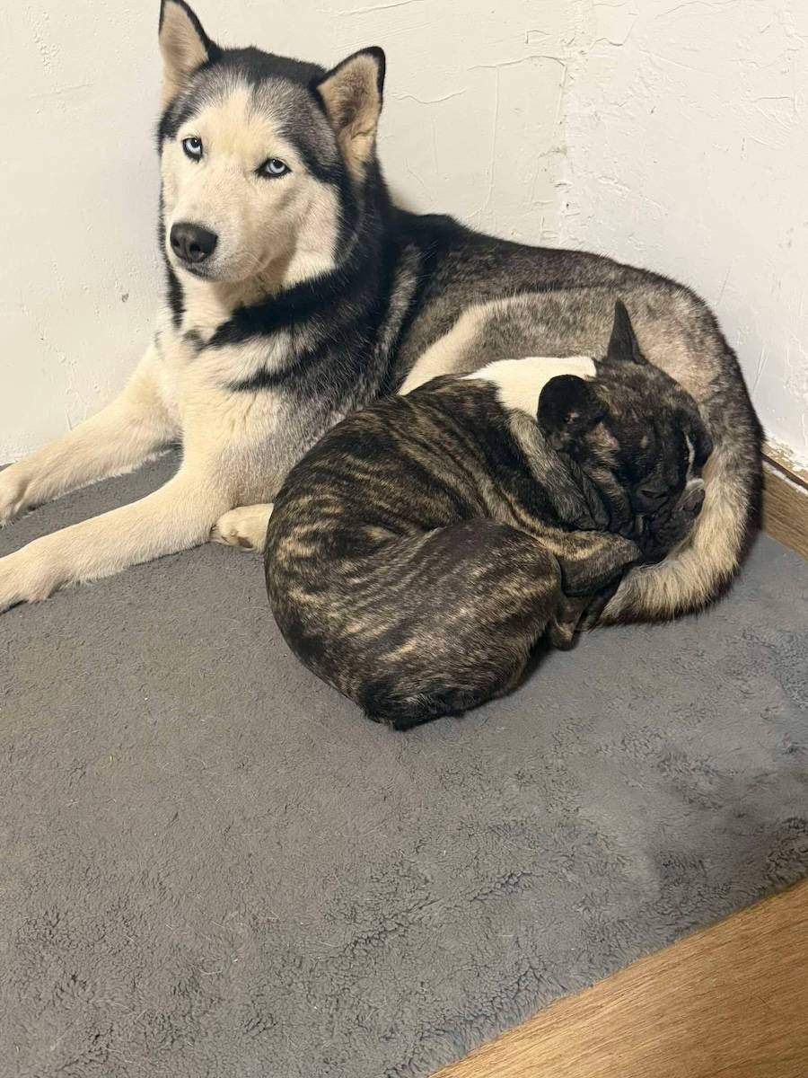 Ein vierjähriger Husky und eine zweijährige Französische Bulldogge.