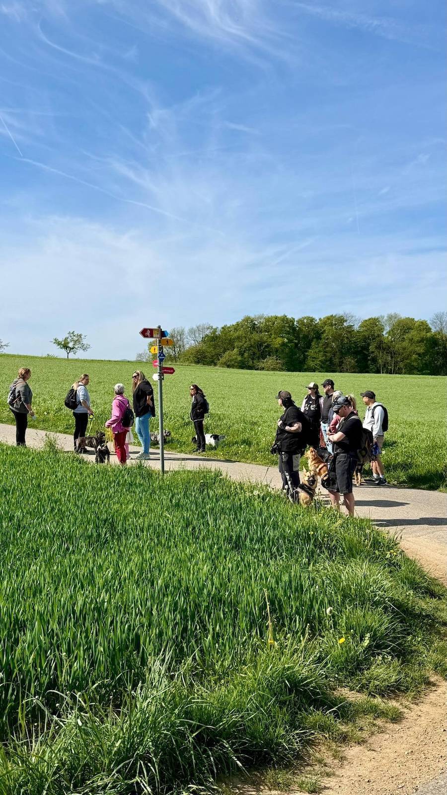 Heute waren 28 Hunde mit ihren Menschen mit dabei – oder sagen wir besser: 28 Hunde und ihr jeweiliges Personal. Bei traumhaftem Wetter durften wir gemeinsam einen wunderbaren Spaziergang erleben. Es wurde geschnuppert, gewedelt, gelacht, geplaudert und hier und da vermutlich auch über Leckerli-Verträge verhandelt.