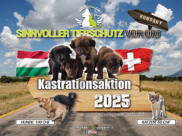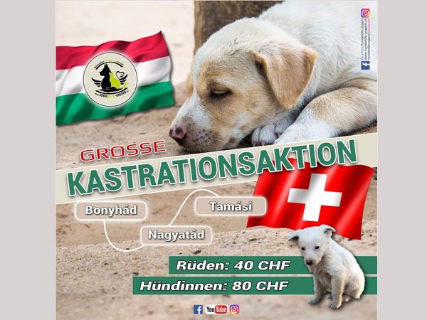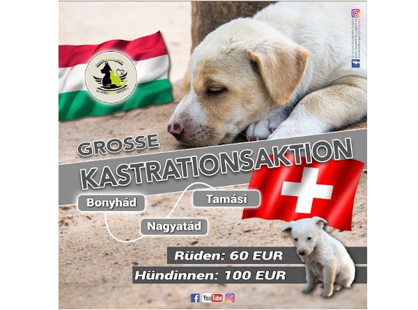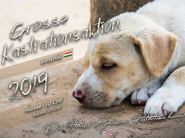 Für die Hundehilfe Ungarn gibt es weder Stillstand, noch ein auf der Stelle treten. Wir lassen Worten Taten folgen und deshalb planen wir ab Januar 2022 eine, über mehrere Monate, gross angelegte Kastrationsaktion in Bonyhád, Nagyatád und Tamási.