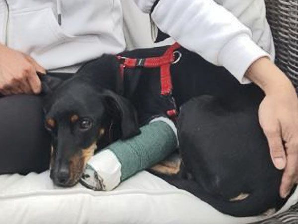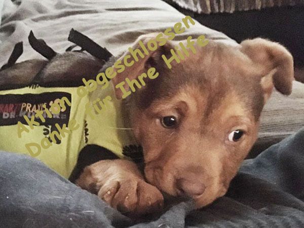 Pompey wurde von einem Auto angefahren und liegen gelassen. Eines der Beine war zwei mal gebrochen und die Haut an der Seite wegradiert. Jemand alarmierte schliesslich das Tierheim und Pompey wurde in die Klinikgebracht. Der Aufprall verursachte einen Pneumothorax und er konnte deswegen nicht sofort operiert werden, es war fraglich ob er überleben würde. Doch Pompey kämpfte sich zurück ins Leben, die Operation verlief erfolgreich und er durfte nach einigen Tagen die Klinik verlassen. Pompey wird im Vereinshaus nun betreut, die schlimmen Hautwunden müssen täglich gesäubert und versorgt werden.