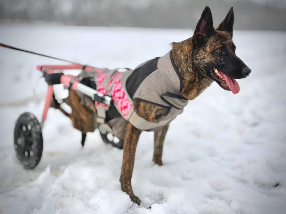 Aliz wurde allein und verletzt an einem Strassenrand gefunden. Sie trug nur ein altes, abgenutztes Halsband mit ihrem Namen darauf, aber niemand weiss, woher sie kommt oder was ihr genau passiert ist. Vermutlich wurde sie von einem Auto angefahren. Durch den Unfall ist ihr Rückenmark durchtrennt, weshalb sie nicht mehr laufen kann und gelähmt ist. Laut der Aussage des ungarischen Tierarztes kann Aliz auch nicht operiert werden, da dies keine Aussicht auf Besserung bringen würde. Trotz ihrer Lähmung hat Aliz keine Schmerzen und kann selbstständig Pipi und Stuhl absetzen. Aliz ist zwischen 4 und 5 Jahre alt (Stand 10/2025) und eine sehr liebevolle, aufgeschlossene und lebensfrohe Hündin. Sie sprüht vor Neugier und Lebensfreude, möchte die Welt entdecken, schnuppern, neue Eindrücke sammeln und einfach dabei sein. Ihre fröhliche Art steckt an und man merkt sofort, dass Aliz noch viel vor hat in ihrem Leben. Für unsere Rolli-Dame suchen wir ein ebenerdiges Zuhause ohne Treppen, idealerweise mit Garten, bei Menschen, die sie nicht auf ihre Lähmung reduzieren, sondern ihr grosses Herz sehen. Ein Zuhause, das ihr Sicherheit, Liebe, Zeit und Geborgenheit schenkt und das für immer. Aliz kommt mit ihrem Rollstuhl hervorragend zurecht. Für sie ist er kein Hindernis, sondern ein Schlüssel zu Freiheit und Abenteuer. Aliz zeigt, dass Glück keine vier funktionierende Beine braucht. Wer Aliz ein Zuhause schenkt, bekommt eine kleine Abenteurerin auf zwei Rädern, die jeden Tag zu etwas besonderen macht.