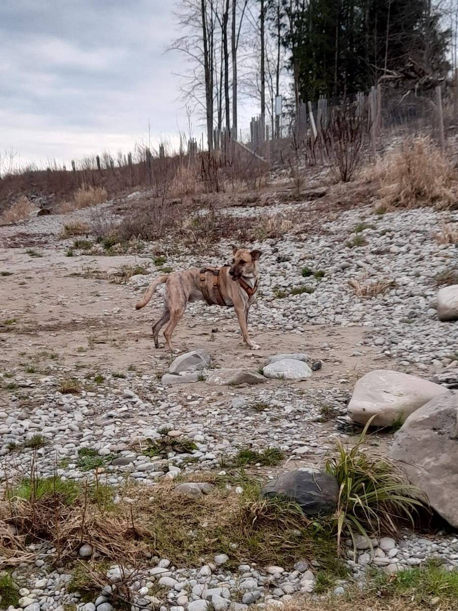 "...Mir sendäd eus na paar Föteli vo eusem hütigä Usflug.Vor allem wenn mir beidi freiii hend,gnüssed märs,wenn mär alli mitenand unterwegs sind...Siiiit einigä Täg dörf dä Ivar frei laufä.....natürli hemär vorher sehr flissig a das Ziel ane trainiert und er isch au mitemä Tracker usgstattet.Er losäd perfekt!!!Anderi Hünd,Velos,Jogger und au Wildtier.....keis Problem....eimal rüefä und dä Ivar stat wie en chliiine Zinnsoldat nebäd eim.